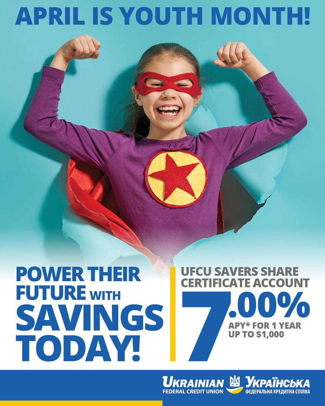 This April, take advantage of special Youth Month promotions at Ukrainian Federal Credit Union. With 15 branches across New York, Florida, Massachusetts, Ohio, North Carolina, California, Oregon, South Carolina, and Washington, we are here to help you and your family build a secure financial future.